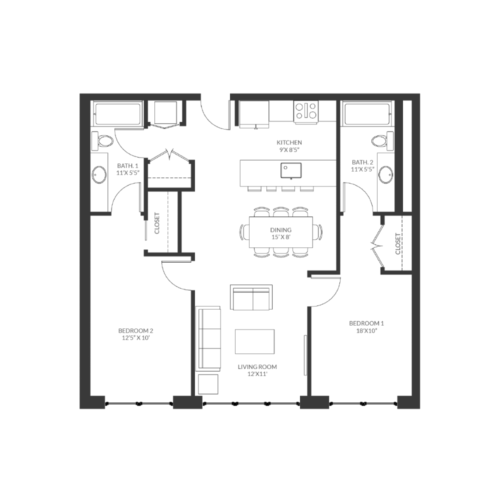 • Bedroom windows — Most alternatives in the area don’t have bedroom windows. We believe natural light, fresh air and views of the outside world, whether a river view or city view, enhance livability and wellness.
